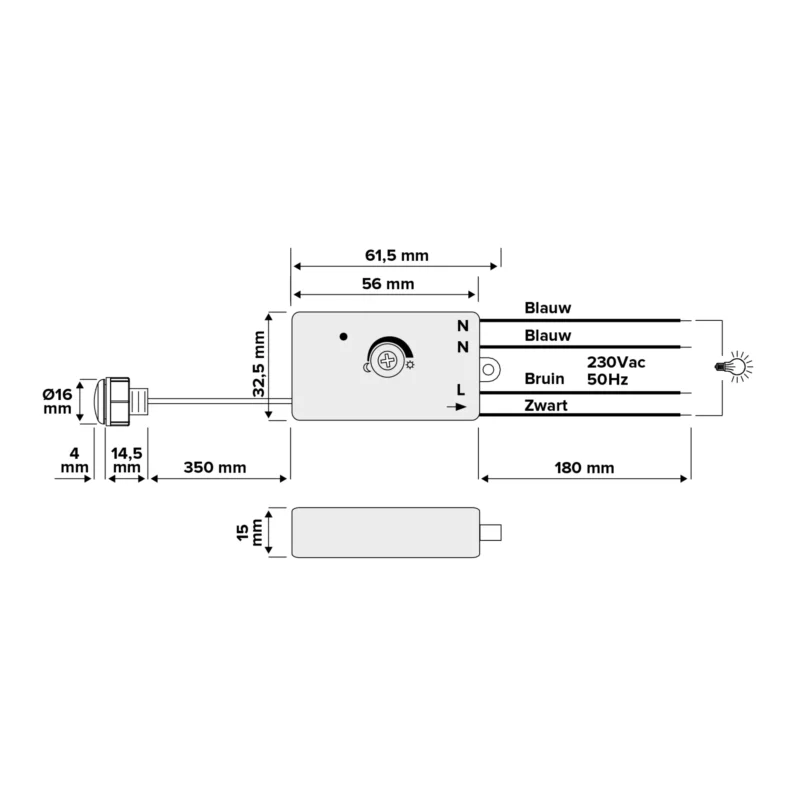 Inbouw schemerschakelaar 0,5A lux instelbaar 5-300Lux