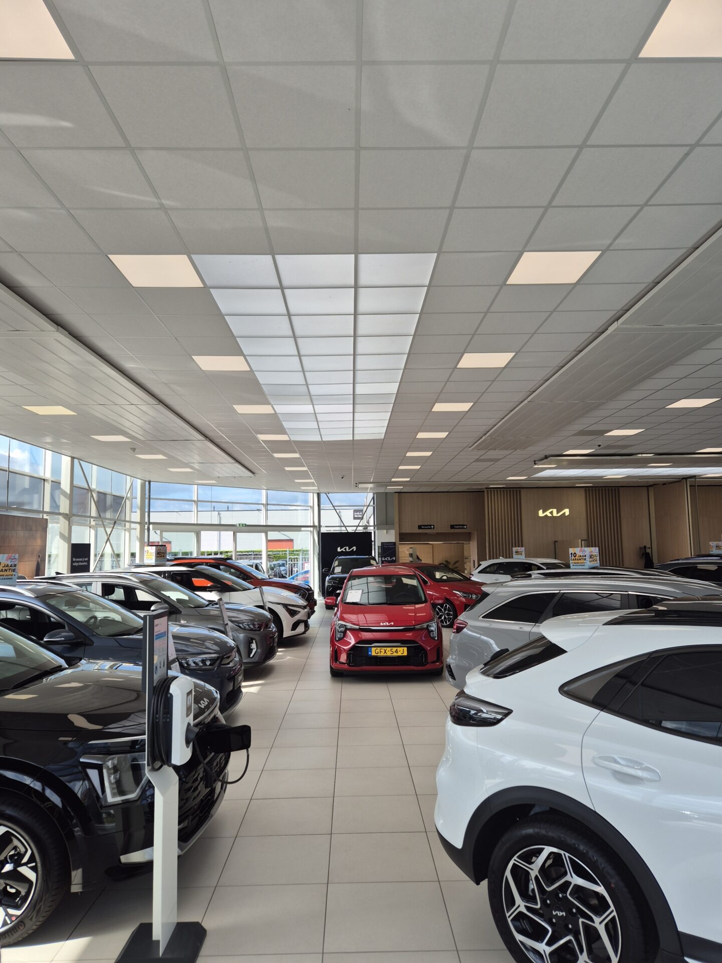Per locatie hebben wij een lichtplan opgesteld dat aansluit bij de specifieke functie van de ruimte. In de showrooms lag de focus op heldere, gelijkmatige verlichting met goede kleurweergave, zodat lak, details en afwerking optimaal tot hun recht komen. In de werkplaatsen hebben we gekozen voor krachtige, efficiënte verlichting met voldoende lichtopbrengst en minimale verblinding, zodat monteurs nauwkeurig en veilig kunnen werken.